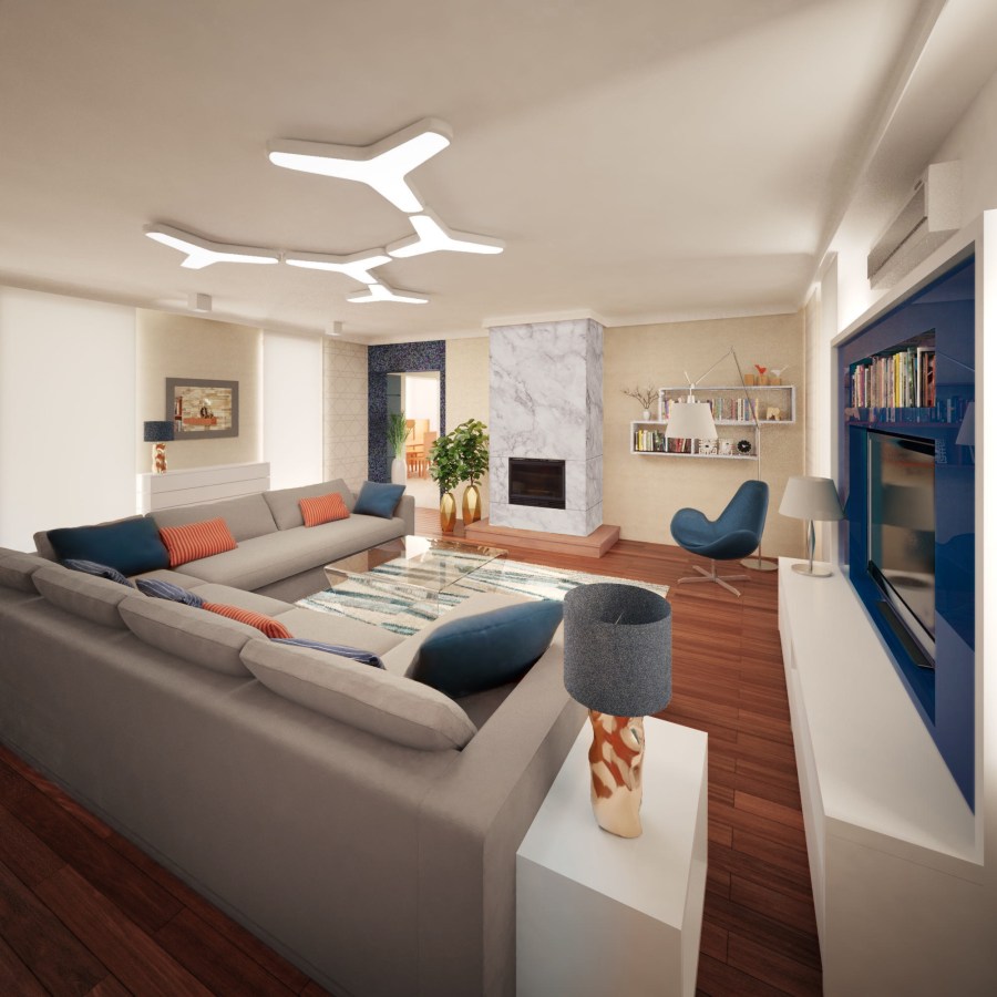 Feladat: A 15 éves családi ház markáns mediterrán anyaghasználattal épült. A fiatal tulajdonosok frissebb, modernebb, ugyanakkor otthonos tereket, időtálló, minőségi anyaghasználatot és a meglévő egzóta parketta megtartását kérték.